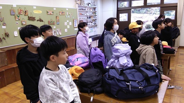 快晴の中、野外教育活動の出発式を行いました。5つの「合い」を大切に、すてきな2日間をすごしてほしいと思います。