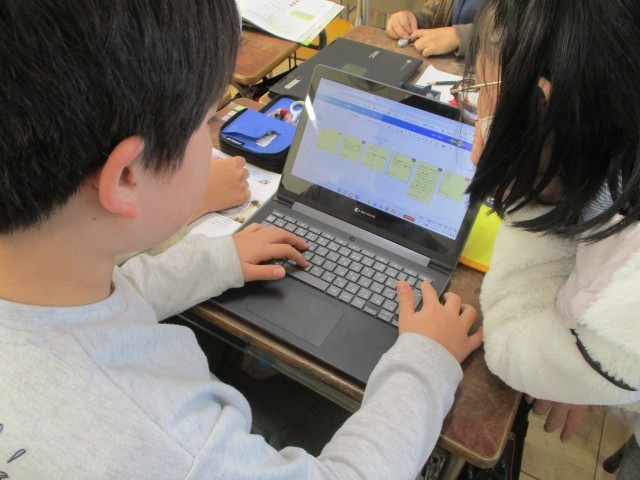 社会では、工業製品について考えました。学習者用端末を使って、班のメンバーの意見を集約しながら進めました。