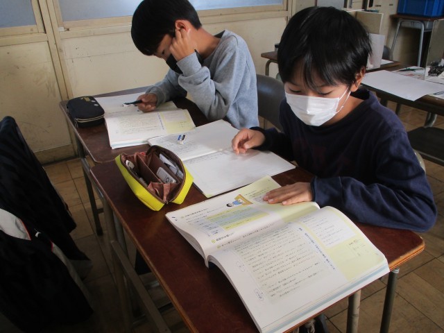 教科書の本文をクラスで息をそろえて音読しました。