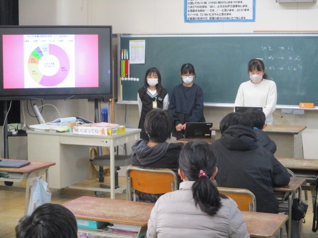 外国語では、行きたい場所を尋ねたり、答えたりする練習をしました。授業の最後には、消えた単語は何かを推測するゲームで楽しみました。