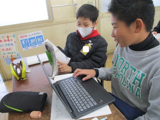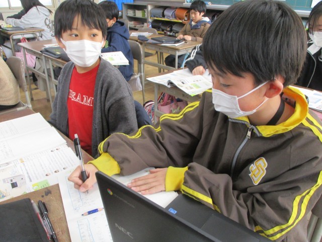 国語では、説明文から読み取ったことを、「同じだよね」「やっぱそこだよね」と隣の友だちと確認し合いました。