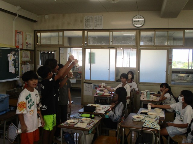 また、給食の時に、「明日がんばるぞー」って牛乳で乾杯したり、