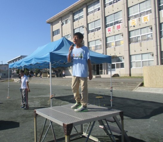 一斉下校の時に、全校のみんなに向かって「明日は最高の1日にしましょう!」って呼びかけたりと、