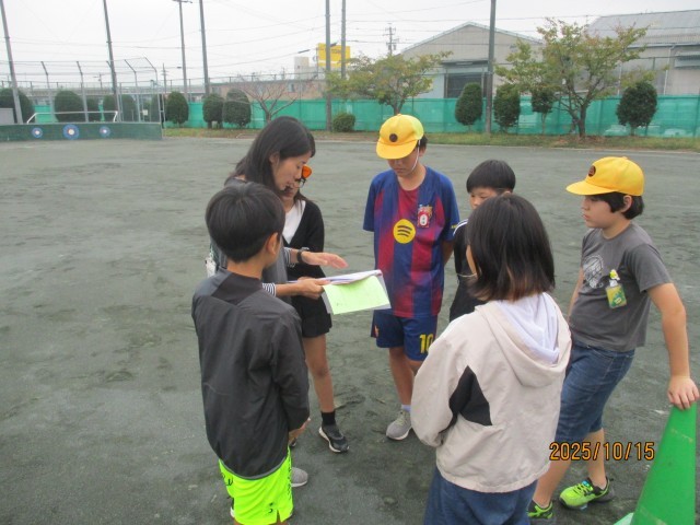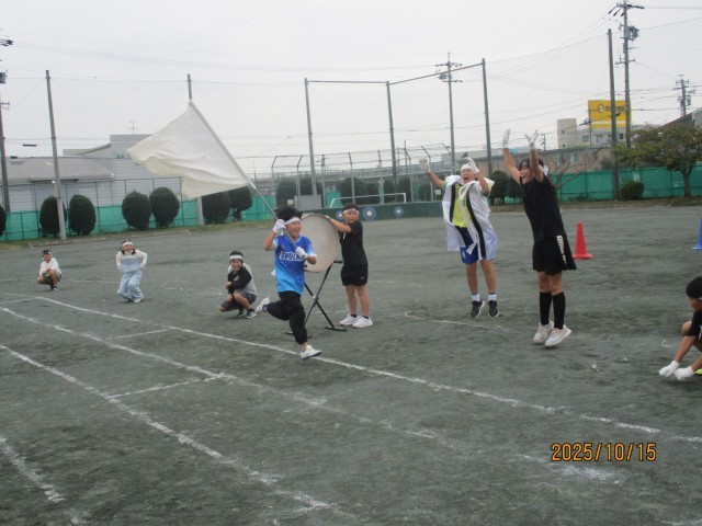 フラッグを使っての練習が始まりました。まだまだ振り付けを覚える段階ですが、バサッという音がそろうと、とてもかっこよかったです。旗の振り方や隊形移動、顔の向きなど覚えることがたくさんありましたが、真剣に練習に取り組むことができました。