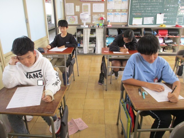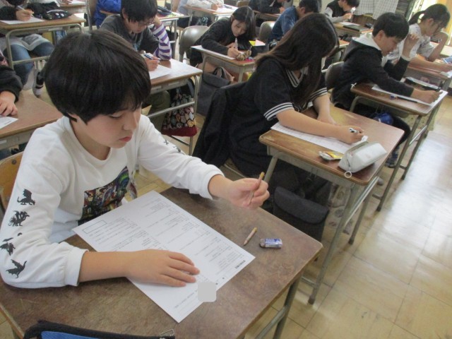しおりの内容がしっかり頭にはいっているか確認するため、修学旅行検定を行いました。テスト前には友だちと問題を出し合ったり、大切なところに線を引いたりして勉強していました。
