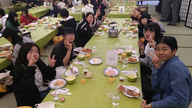 ホテルで朝食をいただきました。しっかりとエネルギーを充電し、2日目もみんなと力を合わせてがんばってほしいと思います。