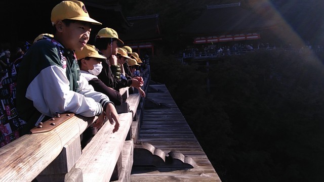 清水寺を拝観してきました。「清水の舞台から飛び降りる」の意味を高さから実感しました。「すごく景色がよかった!」と子どもたちは、口々に言っていました。