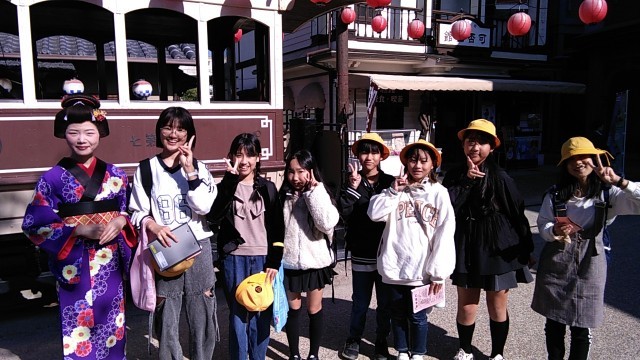 子どもたちが楽しみにしている映画村に到着しました。班で話し合いながら、アトラクションや買い物を楽しみました。