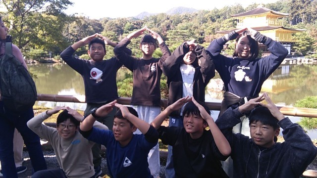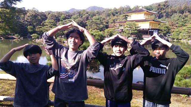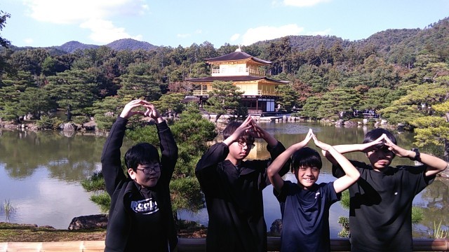 子どもたちは、写真で見ていたものよりピカピカの金閣に声があがっていました。金閣をほぼ予定通り出ました。
