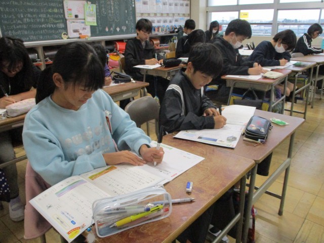 6年生 +2 修学旅行明けの一日でしたが、姿勢を正して集中して書写に取り組みました。