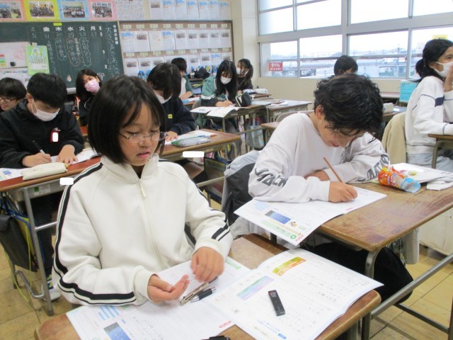 6年生 +3 修学旅行まであと少し! しおりの内容がしっかり頭にはいっているか確認するため、修学旅行検定を行いました。テスト前には友だちと問題を出し合ったり、大切なところに線を引いたりして勉強していました。