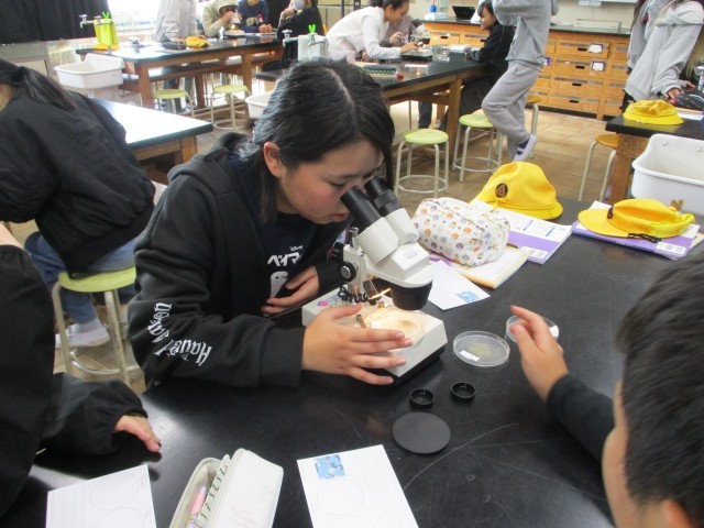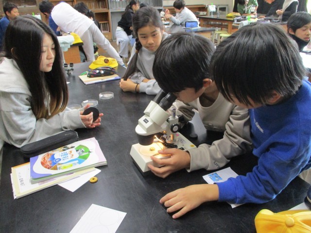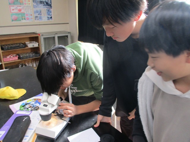 理科では、グループのメンバと協力しながら、金属に塩酸を加えたときの反応を調べました。