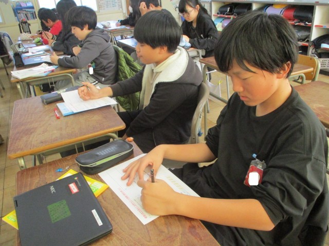 修学旅行明けの一日でしたが、姿勢を正して集中して書写に取り組みました。