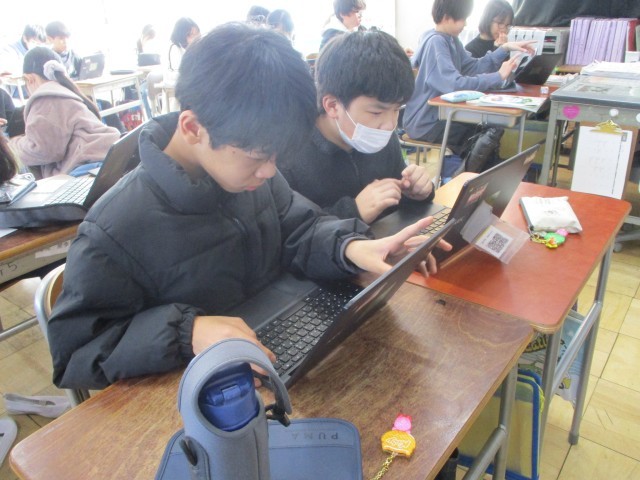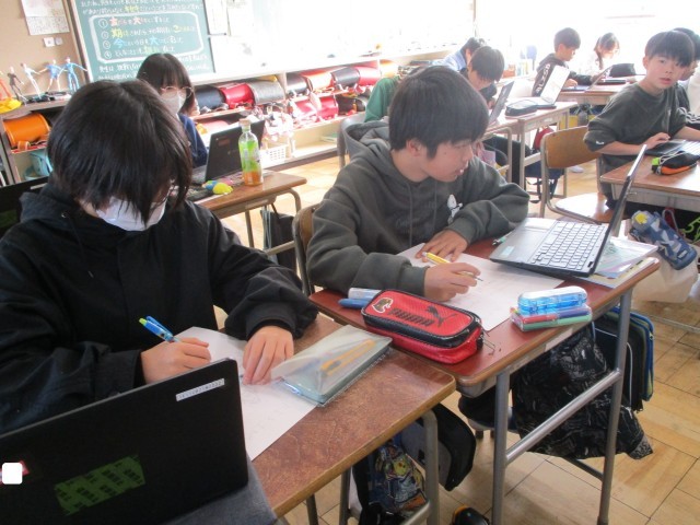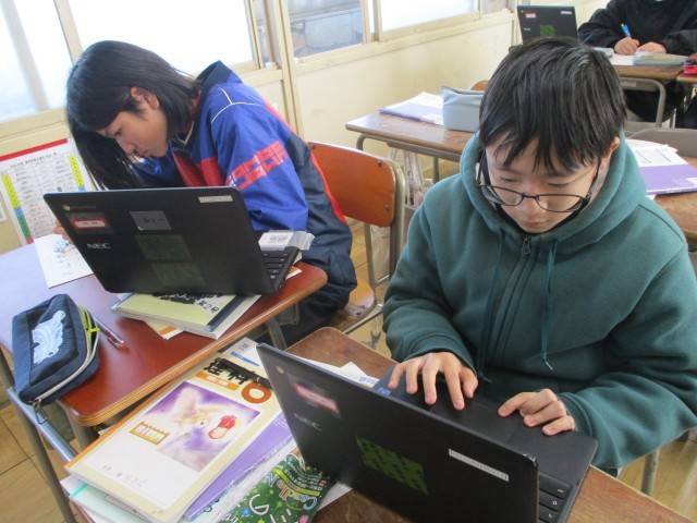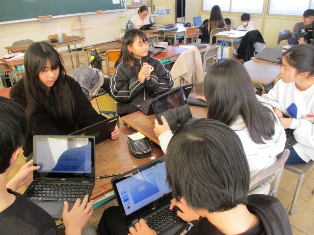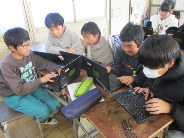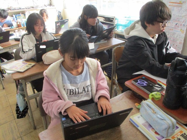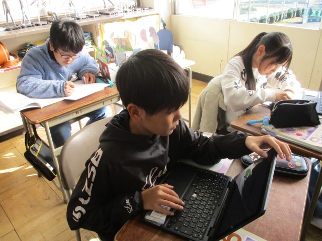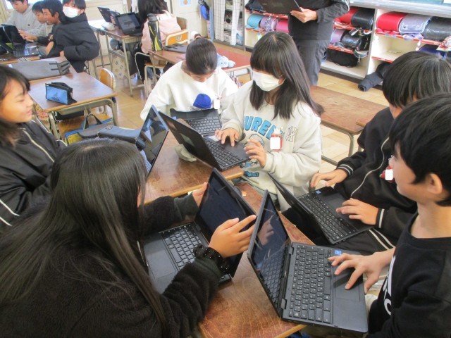 「総合」の時間に、「ワクワクフェスタ」のスライドづくりをグループのメンバーと進めました。