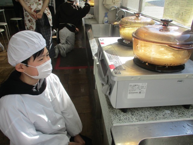 家庭科の調理実習では、みんなと力を合わせて、「ベーコンポテト」をつくりました。
