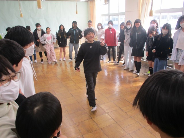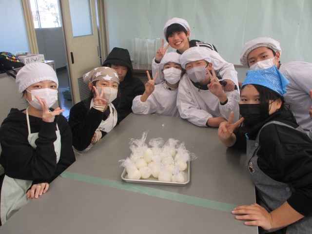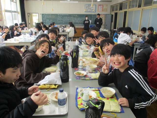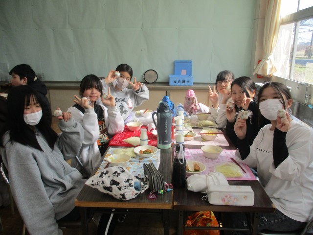1限から、お米を炊いたり、お世話になった丹陽小の先生にメッセージを書きましたが、みんなの表情が穏やかな笑顔で、ほほえましい光景でした。1グループ1種類のおにぎりを全部で6種類、心をこめてにぎりました。たくさん作れたので、みんな3個は食べたと思います。先生たちと「おにぎりじゃんけん」をし、勝った人から選べるので白熱したおにぎりじゃんけんになりました。ちなみに一番人気は「塩むすび」です。家庭科室で学年みんなで給食を食べ、掃除までの時間を、ちょっとしたレクで更に盛り上がりました。
