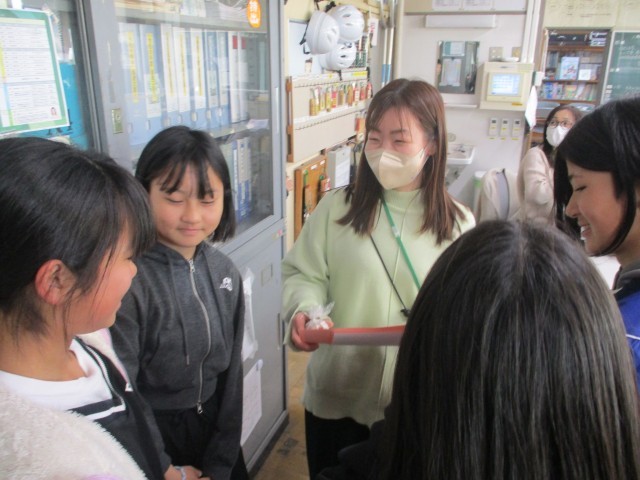 昼放課にお世話になった先生方へ寄せ書きにおにぎりを添えて、感謝の気持ちを伝えました。6年生の子どもたちにとっても先生たちにとっても心温まる時間を過ごすことができました。