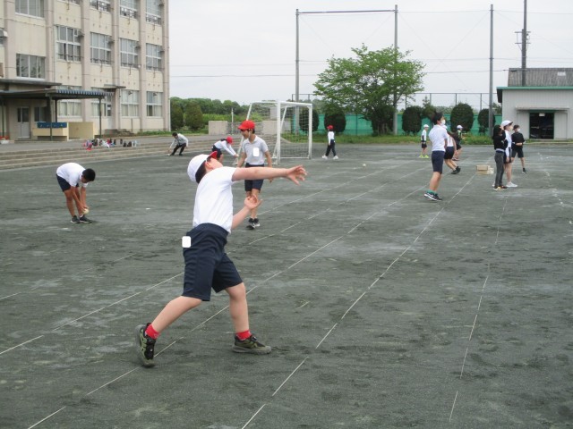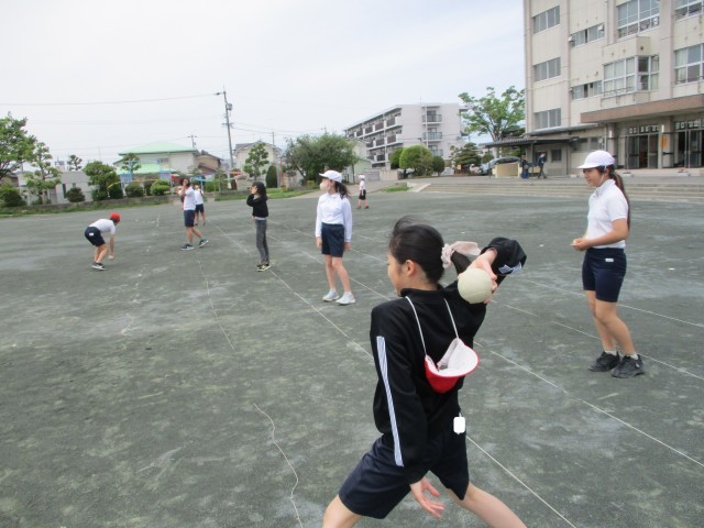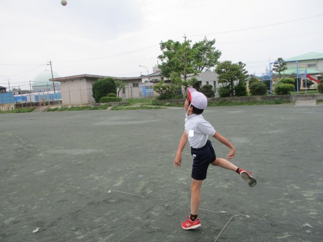 体育では、体力テストに向けてソフトボール投げの練習をしました。「どうすれば遠くまで飛ぶか」を考え、腕の振りや体の向きを確認しながら、一生懸命に取り組んでいました。