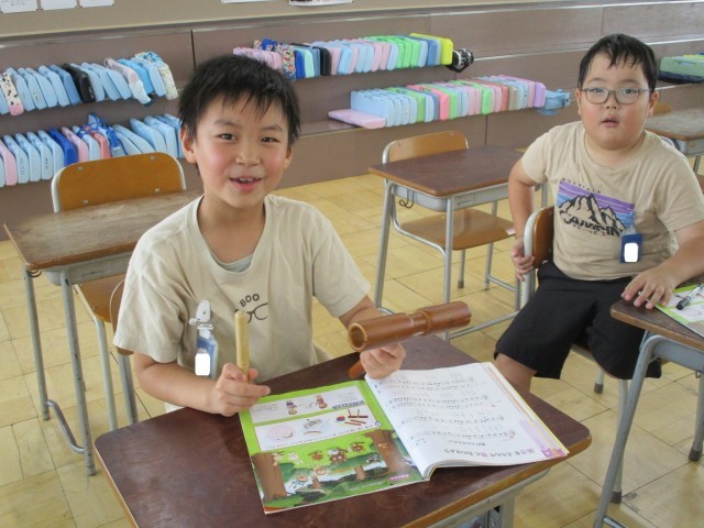 今日の音楽の時間には、季節の歌として「虫のこえ」を歌ったり、「マジカルシラソ」をリコーダーで演奏したりしました。