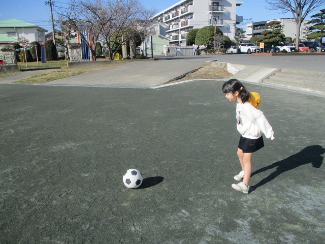 風が少なく日差しが暖かな日でした。中間放課では、みんなとサッカーをしました。