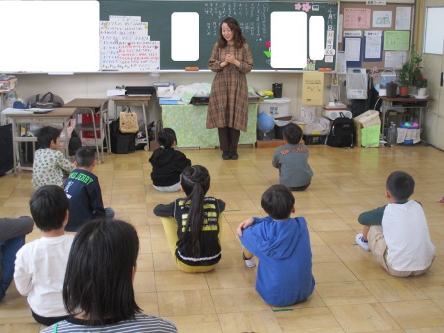 朝に、保護者ボランティアの方に読み聞かせをしてもらいました。