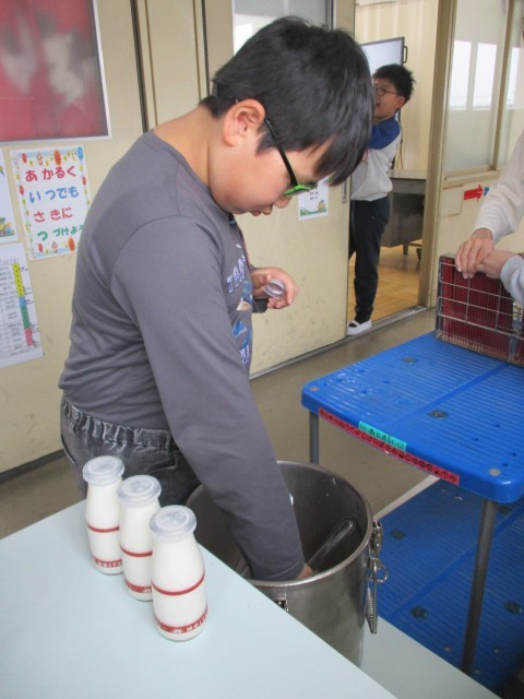 みんなと向かい合わせで、おいしく給食をいただきました。
