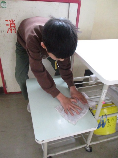 掃除も、自分の分担を責任をもって行っています。