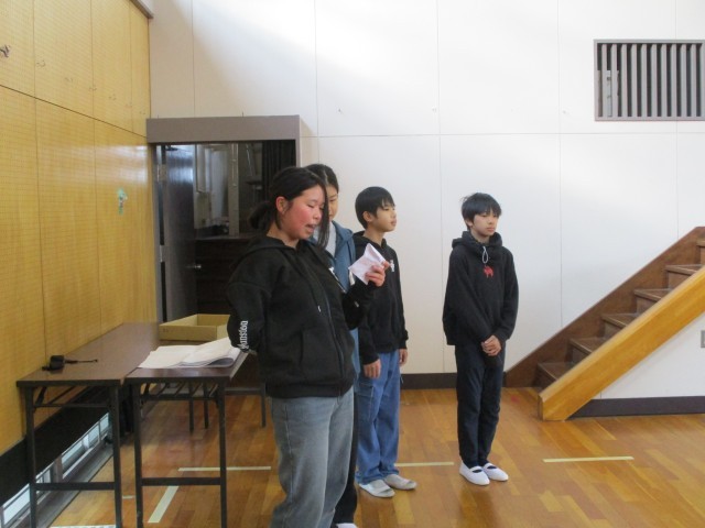 12月1日から始まる人権週間に向けて、児童会役員と代表委員の児童が集会の練習をしています。