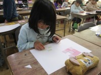 国語では、「話の作者になろう」という課題に挑戦しました。与えれた最初と最後の挿絵を基に、お話を考えて挿絵も入れました。「先生、読んで!」みんなすてきな作者になっていました。