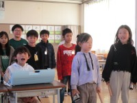 外国語活動で、「福笑い」をしました。顔のパーツを英語で言いながら、置く位置を英語で指示します。楽しい顔が完成し、子どもたちは、笑顔でした。
