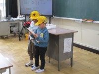 今年度のペア結成式がありました。一年間いろいろな集会活動を一緒に取り組みます。今日はお互いの名刺交換をしました。色塗りをしたり絵を描いたりして準備しました。その後に、ペアでするゲームをしました。クイズ...