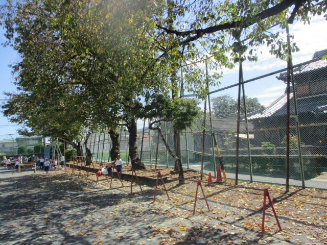 校庭で遊んでいるとき、風に吹かれてたくさん桜の葉が降ってきました。