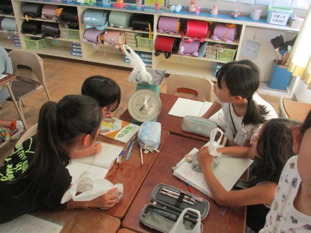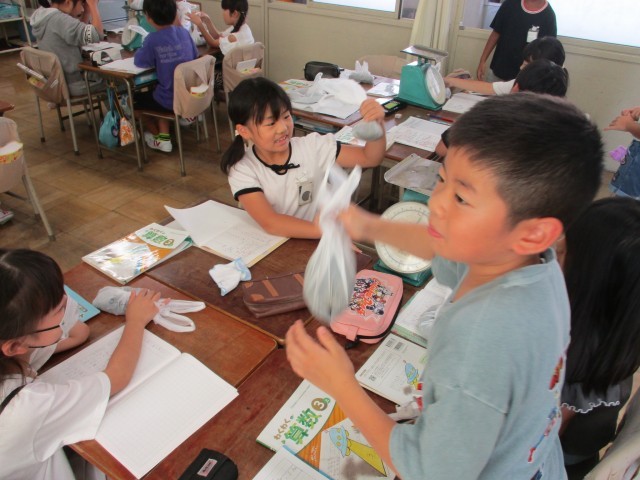 砂場の砂で1㎏だと思う量を袋に詰めました。