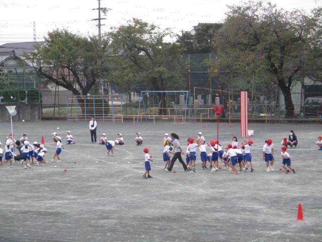 1年生と2年生が運動会で行う玉入れの練習をしていました。