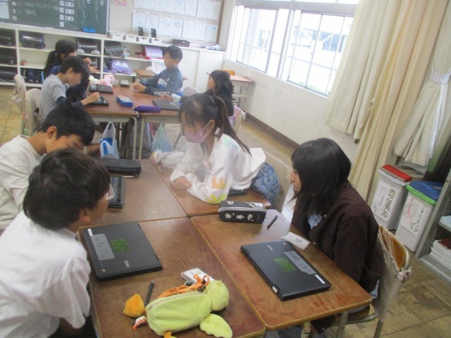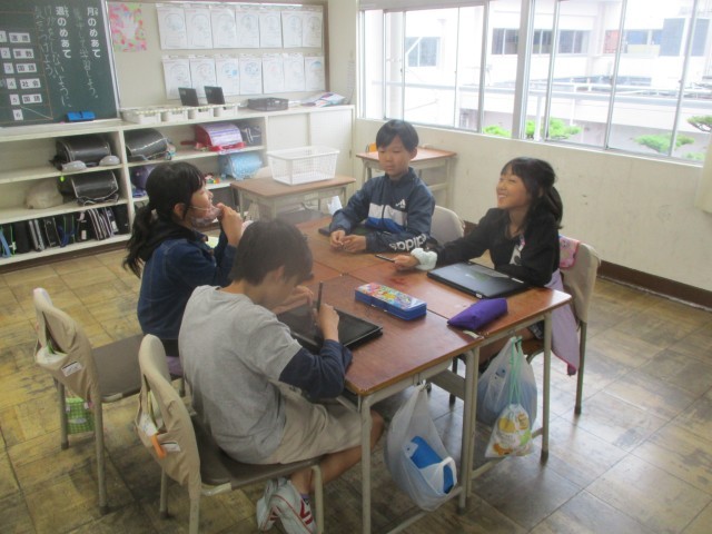 今日の朝の学習タイムはタブレット端末を使って話し合い活動を行いました。タブレット端末に自分たちが話し合ったことについて記録をしました。初めて、タブレット端末を使った話し合い活動を行いましたがどのグループもしっかりと話し合いができていました。