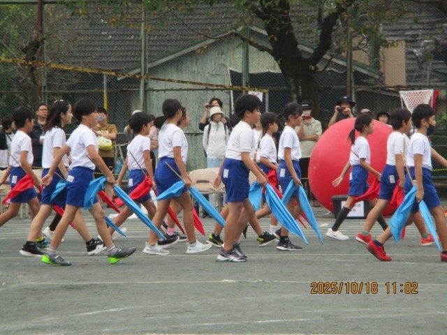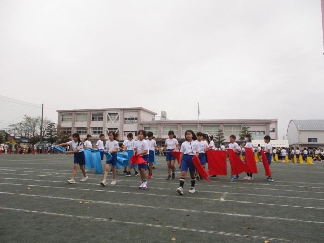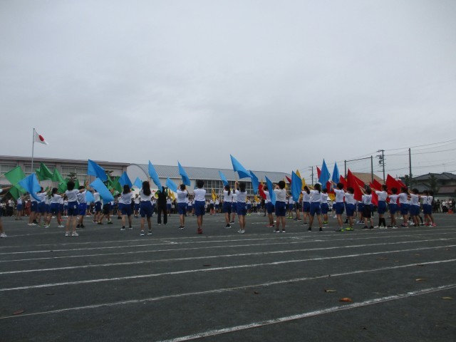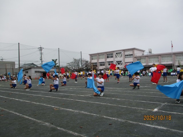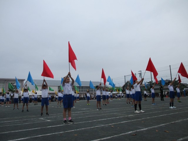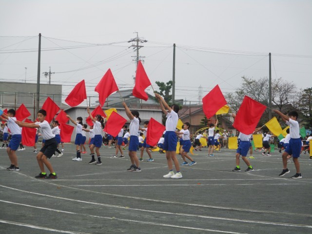 3つ目は「つなぐ想い~君の元へ届くように~」です。5年生にとっては、初めて経験するフラッグ演技でしたが、心と振りを合わせて演技することができました。見ていただく方に想いがとどくように、今日まで練習を積み重ねてきました。集団だからこそ味わえる「仲間とつながる喜び」も感じることができました。