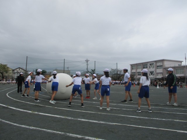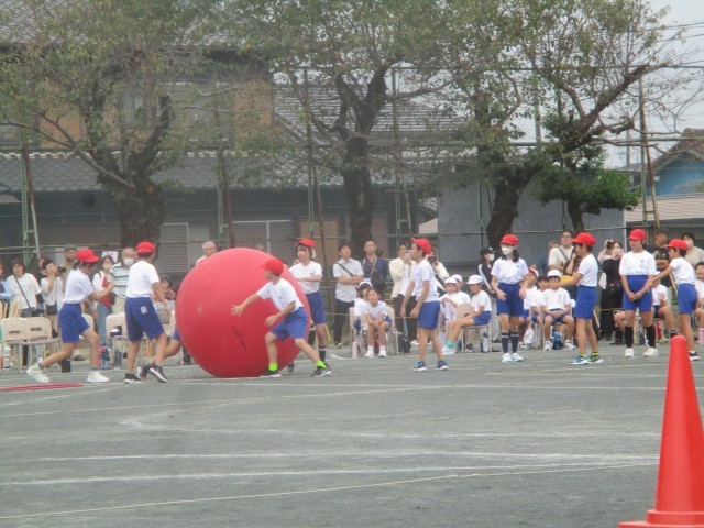 2つ目は「大玉ダッシュ!」です。大玉をゴールに向かって、一生懸命、転がしました。