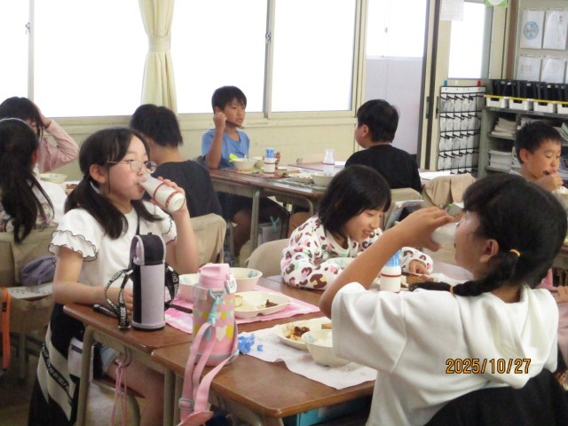 すべてのメニューに大豆が使われていました。国語の学習で学んだ「すがたをかえる大豆」そのものに、みんな「大豆パーティーだぁ」と、大喜びでした。
