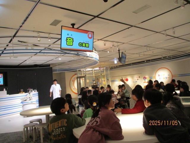 館内では「オームシアター」で楽しいゲームに参加したり、「音」の実験で音の感じ方を学び、プラコップを使った音の実験もしました。