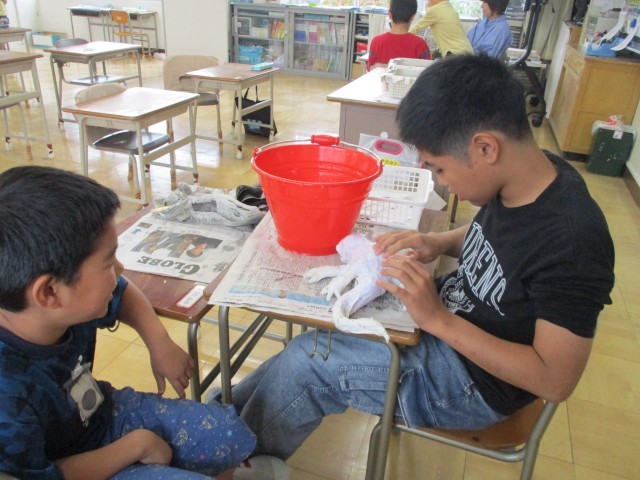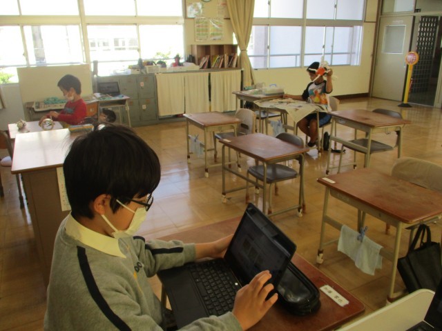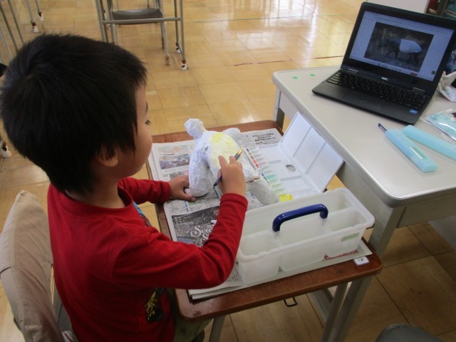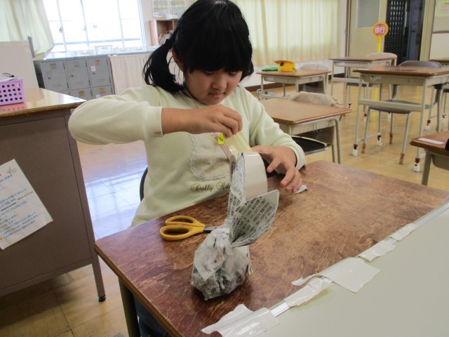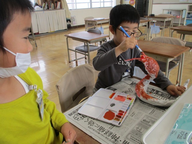 1月に行われる手をつなぐ子らの教育展の作品作りを進めています。形を整え、のりで固め、色を塗る活動を意欲的に行っています。学習発表会に向けての写真選びや、鍵盤ハーモニカの学習をがんばっています。