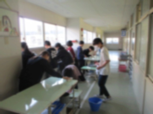 2学期最後の給食委員会の時間です。各教室の配膳台の掃除や2学期のふり返りをしました。