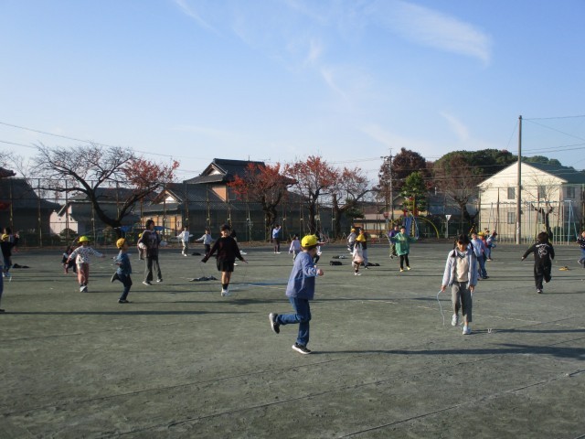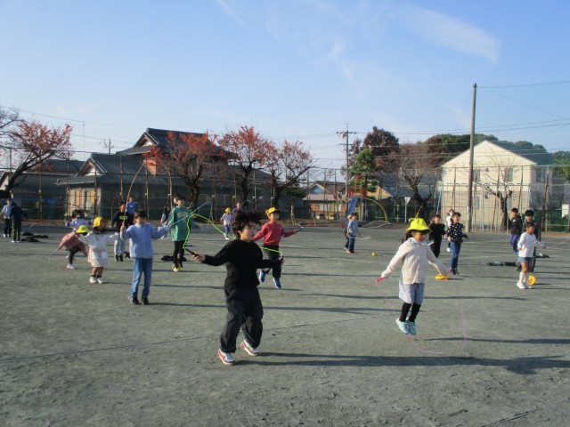 今日の朝は、2年生のペアの子とリズム縄跳びをしました。