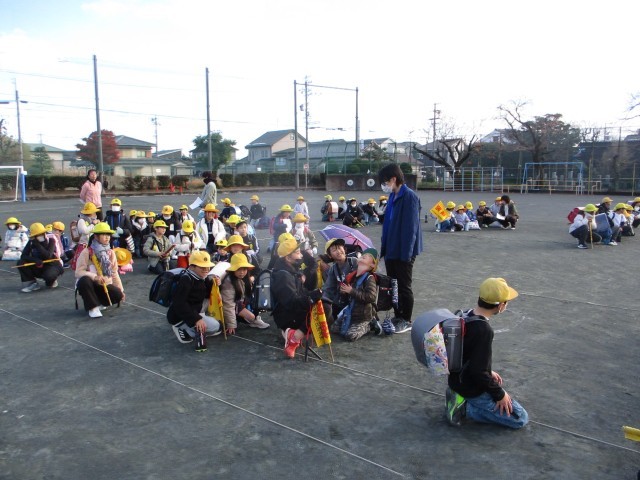 今日の一斉下校では、昨日の通学班長会を受けて、ミニ通学団会を行いました。