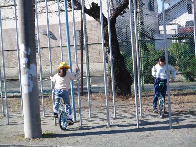 一輪車、鬼ごっこ、ドッジボールなどで楽しそうにすごしていました。