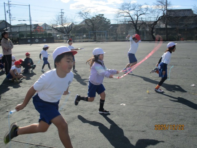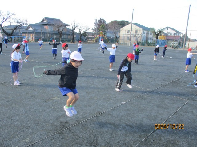 今日は1組、2組の合同で体育を行いました。縄跳び練習や走り跳び、ドッチボールなど、たくさん体を動かしてぽっかぽか。お友だちと一緒にやると楽しいね。お友だちに褒めてもらうと嬉しいね。