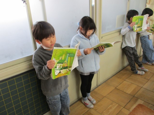 国語では、声の大きさや速さ、姿勢などに気を付けながら音読するだけではなく、友達と交互に読んだり、暗記したりして集中力を高めています。