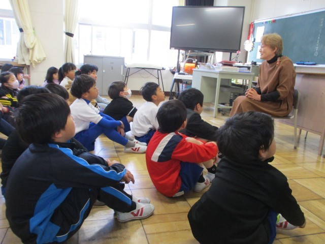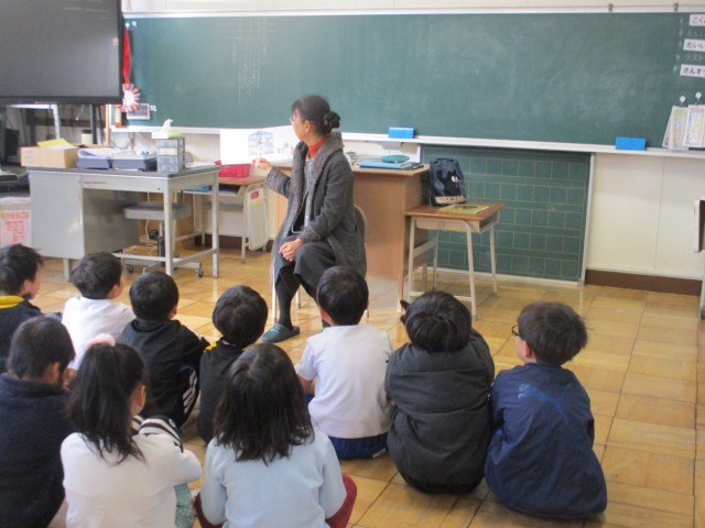今日はぶっくままさんの読み聞かせがありました。1組は「そらいろのたね」、2組は「オオカミと7匹のこやぎ」の素話でした。みんな夢中になって聞き入っていました。