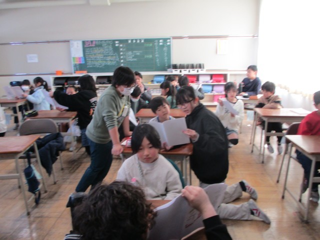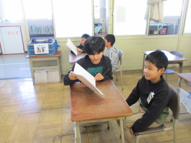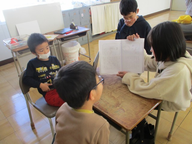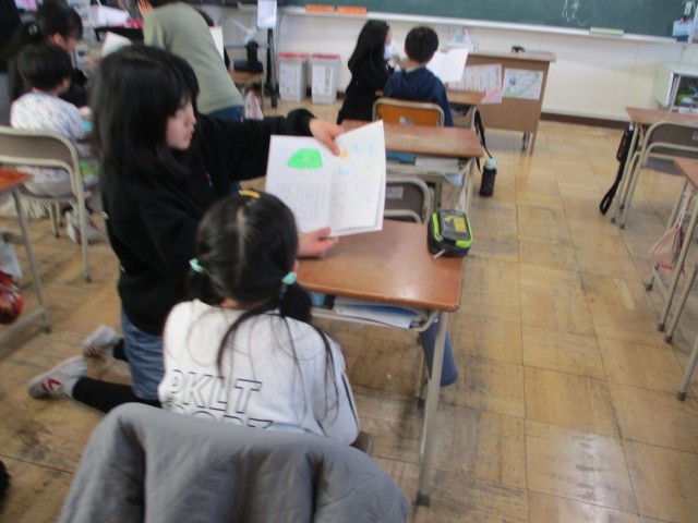 今日は、ペア読書がありました。国語の「もうひとつの物語」で、「スイミー」か「お手紙」の好きなお話を選んで内容を変えて書く学習をしました。2年生の子が喜んでくれるように、どの子も一生懸命、絵本を書きました。