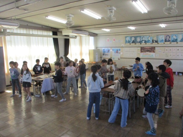 自分たちで相談し担当する楽器を決めて演奏したり、これまで学んできた歌を歌ったりしました。