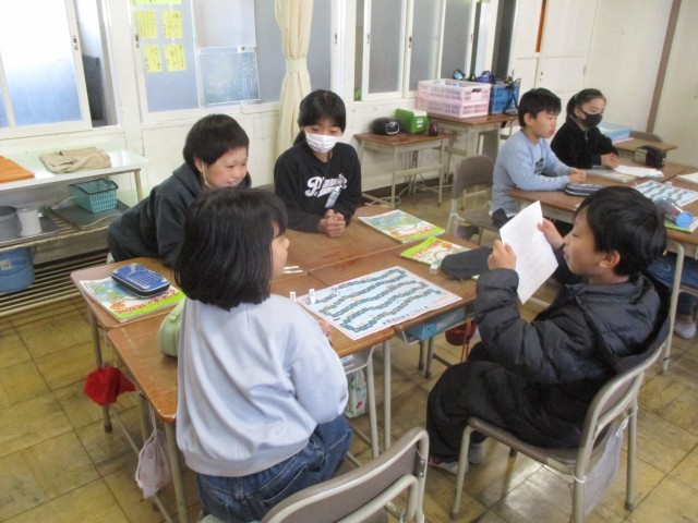社会の時間は3年生のために作った都道府県すごろくを4年生もやってみました。自分たちが作ったすごろくですが、とても楽しかったようで大盛り上がりでした。3年生も楽しんでくれるといいですね。